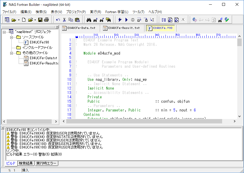 以下に Fortran Builder で nAG ライブラリテンプレートを利用する手順を示します。